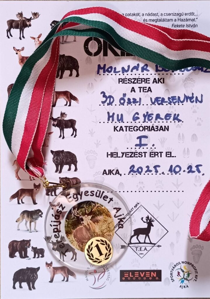 Bendegúz a T.E.A. 3D őszi versenyen HU gyerek kategóriában I.helyezést ért el.
